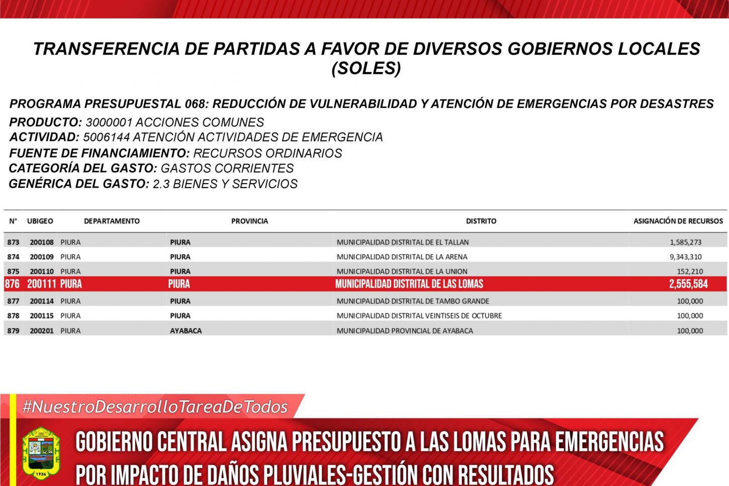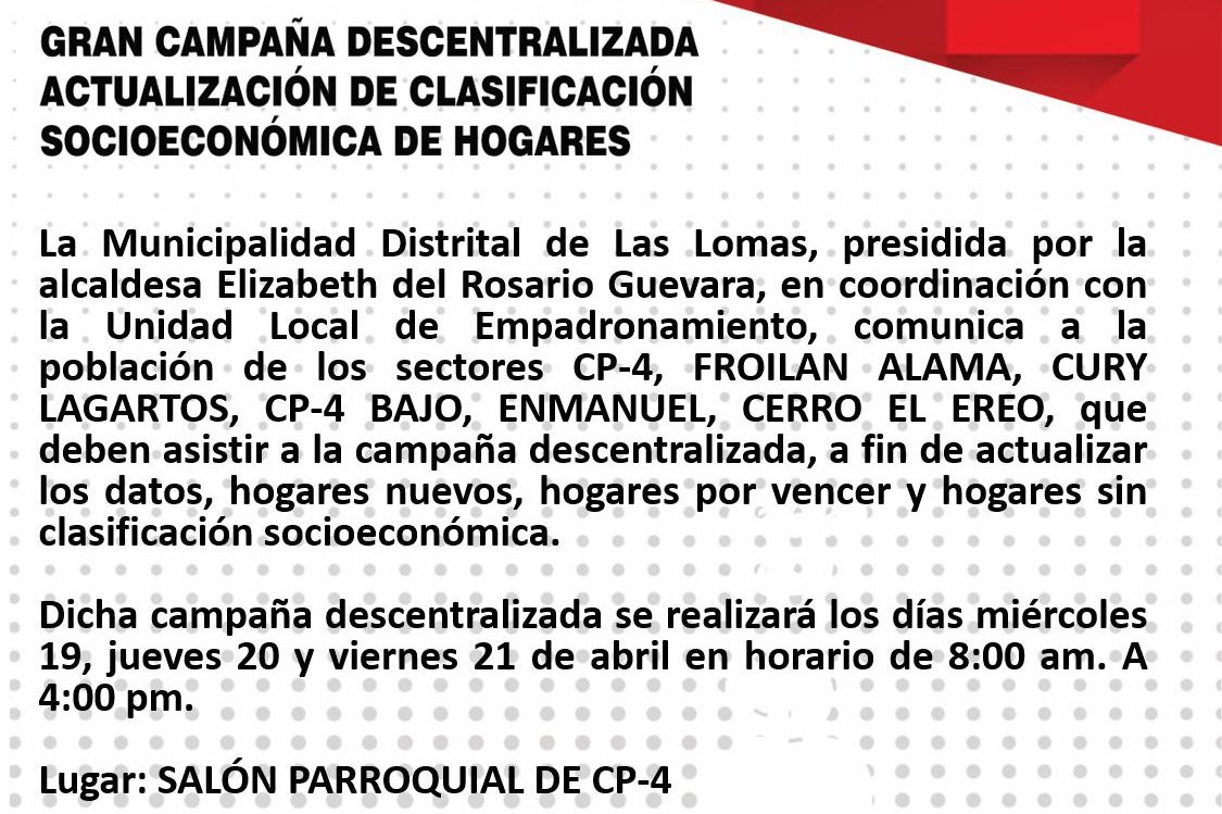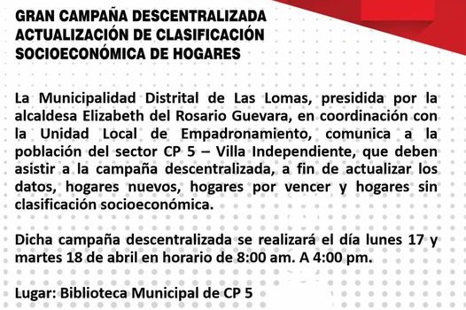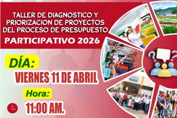 🔰La actual gestión municipal, llevará a cabo este viernes 11 de abril a partir de las 11 de la mañana, el Taller de Diagnóstico y Priorización de Proyectos, como parte del proceso de Presupuesto Participativo 2026. En esta reunión participarán activamente los agentes participativos de Las Lomas y el Bosque Seco. 📌El evento contará con…