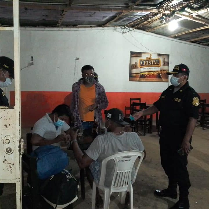 Las autoridades indicaron que han intervenido bares y cantinas que atendian en pleno toque de queda dando paso a su cierre total y aplicando a los consumidores que se encontraban en ese instante su respectiva multa y traslado a la comisaría.