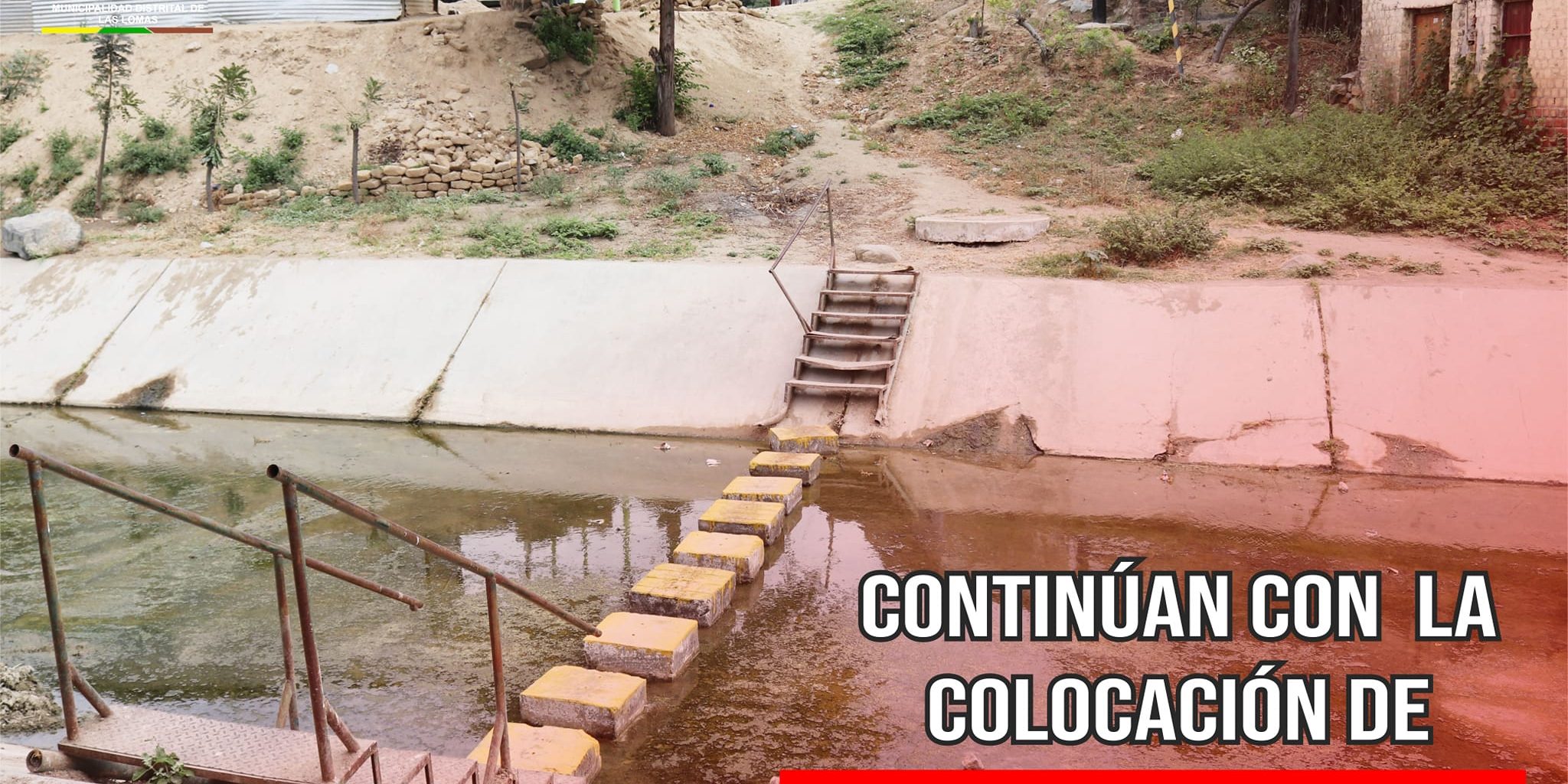 #ColocaciónDePasesPeatonales || La Municipalidad Distrital de Las Lomas, por disposición de la alcaldesa Elizabeth del Rosario Guevara, continúa brindando la solución inmediata en cada una de las zonas del canal vía; a fin de facilitar el pase peatonal a los transeúntes que cruzan por este conducto.