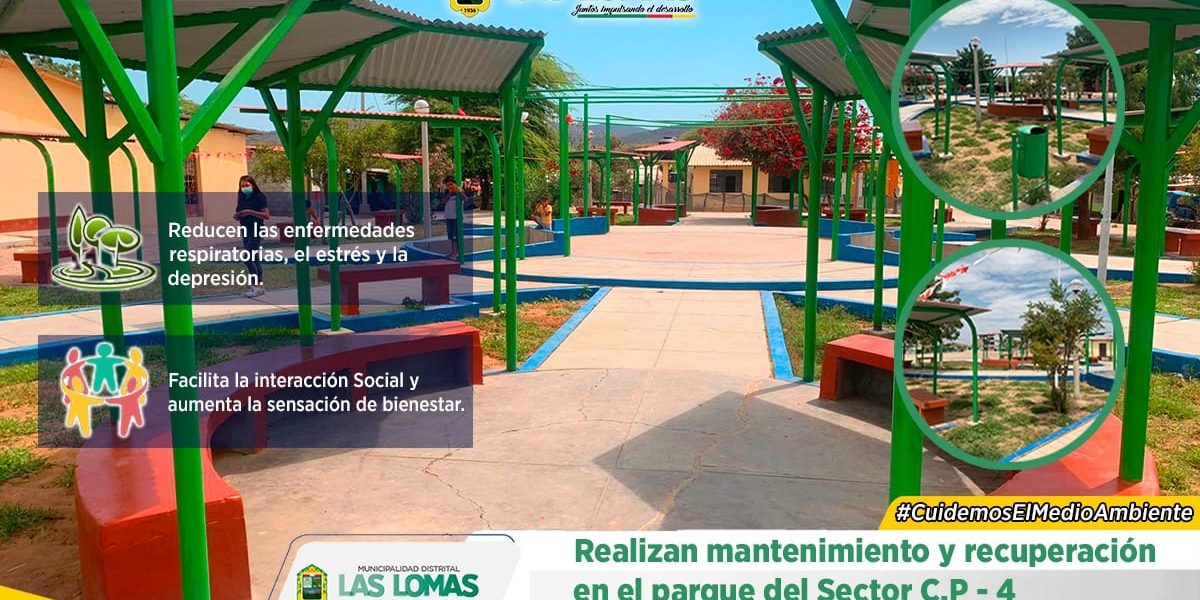 La Municipalidad Distrital de Las Lomas, a través de la Subgerencia de Limpieza Pública, Parques y Jardines realiza los trabajos de mantenimiento de áreas verdes y recuperación del parque del sector CP4.