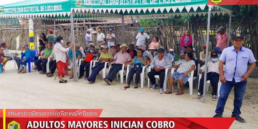 Tal como se había programado, los adultos mayores iniciaron hoy, el cobro de su pensión; y lo vienen haciendo de forma ordenada, gracias al trabajo articulado con el programa #Pensión65 y la Municipalidad Distrital de Las Lomas mediante la estrecha coordinación con nuestra alcaldesa Elizabeth del Rosario Guevara, quien muestra constantemente su preocupación a fin de que nuestro adultos mayores sean atendidos de forma oportuna y con todas las facilidades del caso.