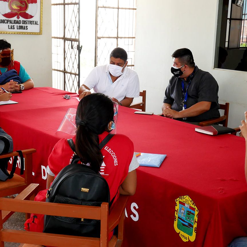 Una importante reunión se llevo a cabo en el salón de actos de la Municipalidad Distrital de Las Lomas, en la que participaron el regidor Carlos Mena Ruiz, el Subprefecto distrital Martín Ato Nole, el encargado de serenazgo James Avendaño Rivas, fiscalizadores del Jurado Nacional de Elecciones y el encargado de la ONPE en Las Lomas, en esta reunión se explicó el trabajo que vienen realizando los entes electorales, así también el apoyo que viene brindando la comuna municipal a fin de poder dar condiciones a los actores electorales en el proceso de este 11 de abril.